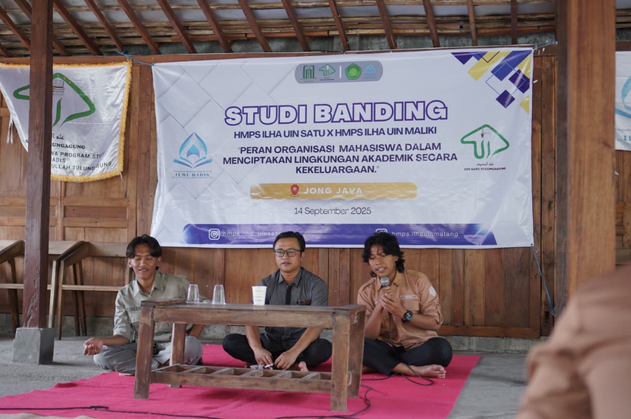 Himpunan Mahasiswa Prodi Ilmu Hadis (HMPS Ilha) UIN Maulana Malik Ibrahim Malang melakukan kunjungan studi banding ke Himpunan Mahasiswa Prodi Ilmu Hadis UIN Sayyid Ali Rahmatullah Tulungagung pada Ahad 14 September 2025. Kegiatan ini bertujuan mempererat silaturahmi, memperluas wawasan organisasi, serta bertukar gagasan tentang pengelolaan program kerja kemahasiswaan.